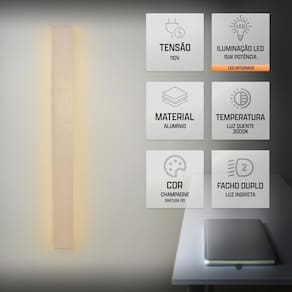 transforme seu ambiente com o kit/2 arandela profile, um modelo sofisticado que combina design moderno e iluminação eficiente. Seu acabamento em alumínio champagne proporciona um toque elegante e contemporâneo para qualquer espaço. Destaques do produto -com um design moderno e sofisticado - combinando com qualquer decoração e ambiente. -modelo : ar 6137 -cor es : champagne pintura pó . -material de alta qualidade : feita com um alumínio resistente para maior durabilidade. -acompanha fita de led embutida. -ideal para diferentes ambientes - perfeita para quartos, salas, escritórios e áreas gourmet. -peça com acionamento em instalado na residência. -modelo não recarregável. - de 3 meses. Especificações técnicas Kit/2 ar 6137 profile 65x40x725mm 3000k 15w 127v cp Material : alumínio Cor : champagne Iluminação : fita de led Led incluso 3000k branco quente Potência: 15w Voltagem : 127v Medida : 650mm x 40mm x 725mm Peso : 500gr Quantidade : 2 produtos. Observação : o produto necessita de instalação elétrica para o funcionamento adequado. Conteúdo da embalagem : 2 luminárias led. Marca: Não Informado