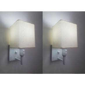 Kit/2 Arandela Quadrada Md-2019 Branco C/ Inter Liga E Desl Cúpula Em Tecido Algodão Crú - Bivolt