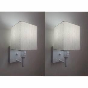 Kit/2 Arandela Quadrada Md-2019 Branco C/ Inter Liga e Desl Cúpula em Tecido Linho Bege - Bivolt