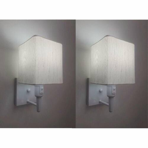 Compre! Kit/2 Arandela de Cabeceira e Camarim Quadrada Md-2019 Branca C/ Inter Liga e Desl Cupula Tec Bege