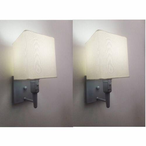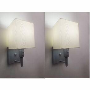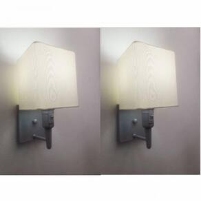Compre! Kit/2 Arandela de Cabeceira e Camarim Quadrada Md-2019 Cinza C/ Inter Liga e Desl Cupula Algodao Cru