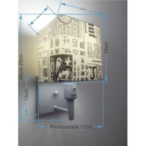 Kit/2 Arandela Quadrada Md-2019 Cinza C/ Inter Liga E Desl Cúpula Em Tecido Ny-jornal - Bivolt Kit/2 Arandela de parede Quadrada Md-2019 Cinza C/ Inter Liga e Desl Cúpula Tecido JornalAs arandelas Lustres Vivare são elementos versáteis e elegantes que podem transformar qualquer ambiente em um espaço cheio de estilo. Seja para adicionar uma iluminação suave, destacar uma parede ou criar um efeito de luz diferenciado.Cúpula em Tecido: 15x14x14cm Arandela de parede Montada: Altura 29cm Largura 14cm Profundidade 17cm Formato: Quadrado Tamanho: Pequeno Especificação:Material: Cúpula em Tecido Estrutura em Alumínio Base Parede: Quadrado 12x12x2cm Resistente: Á Maresia Voltagem: 110V/220V Liga e Desliga: Interruptor no Soquete Tipo de Soquete: E27 Lâmpada Utilizada: Led Bulbo Até 16w ou Fluorescente Espiral Até 25w Cada Capacidade de Lâmpadas: 1 Observação:Acompanha Lâmpada: Não Possui Led Integrado: Não Garantia: 12 Meses Manual de Instalação: Sim Arandela de parede Montada: Sim Controle de Luminosidade: Não Tipo de Embalagem: Caixa Conservação e Manutenção do Produto:A Limpeza deve ser realizada com o produto desligado. Remova o lustre que pode ser lavado com sabão neutro. Nunca utilize produtos químicos e abrasivos Dica:Antes de comprar o seu produto verifique as medidas, o local onde pretende instalar e se necessário o serviço de um profissional qualificado.