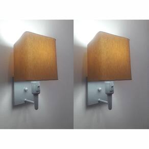 Kit/2 Arandela Quadrada Md-2019 Cinza C/ Inter Liga e Desl Cúpula em Tecido Palha - Bivolt