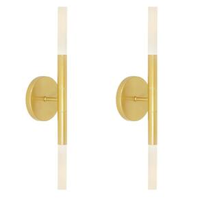 Kit 2 Arandelas Parede Luminária Tubo 2 Difusores Dourado
