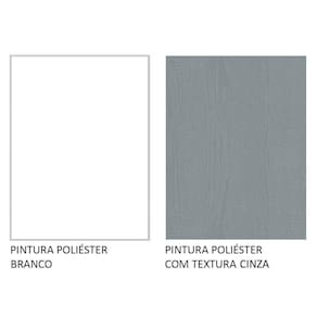 O acabamento combina os tons branco e cinza. É realizado em Pintura Poliéster com 7 camadas, uma opção ecologicamente correta que preserva a beleza do móvel por muito mais tempo.