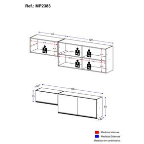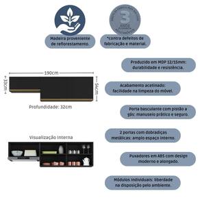 Dimensões do Produto Montado: Altura: 54cm | Largura: 190cm | Profundidade: 32cm *Você pode consultar as medidas detalhadas na imagem técnica do produto.