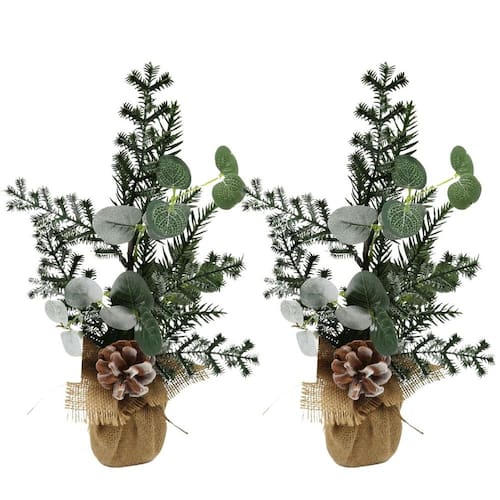 -02 Unidades Arranjo Enfeite de Mesa Natal Rústico Folhagens com Pinha Natural 37cm - Magizi