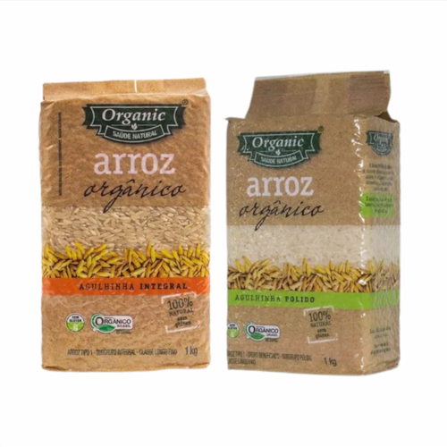 Kit com 2 Arrozes Orgânicos Organic 1kg: Arroz Branco Polido e Arroz Integral