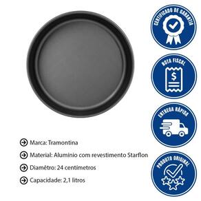 DESCRIÇÃO DA ASSADEIRA REDONDA - Para preparar diferentes receitas, a assadeira redonda Tramontina Brasil em alumínio com revestimento interno e externo antiaderente Starflon Max grafite 24 centímetros de diâmetro 2,1 L é a melhor escolha! - Ela é produzida em alumínio com revestimento interno e externo em antiaderente Starflon Max, características que possibilitam um cozimento rápido e uniforme; além de evitarem que os alimentos não grudem em sua superfície e a tornarem mais durável. - É fácil de limpar e ainda pode ser levada à máquina de lavar louças. - Além disso, ela é superversátil e vai surpreender você em todo os preparos. - Mais um produto Tramontina que vai tornar sua vida muito mais prática!