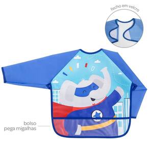 Kit 2 avental babador com manga longa alimentação bebes impermeavel pega migalhas Cor: superhero Kit com 02 avental/babador. O avental/babador com mangas da buba possui tecido impermeavel e bolso pega migalhas, Ideal para evitar que o pequeno suje a roupinha. O fecho se ajusta facilmente ao pescoco do bebe. Composição: babador: 100% acetato de vinil de polietileno peva , mangas: 85% poliester, 15% algodao. Impermeável Fecho em ajuste Pode ser como babador Idade recomendada: +3 meses Com bolso pega migalhas Livre bpa Medidas: 39x75 axl cm Marca: Não Informado