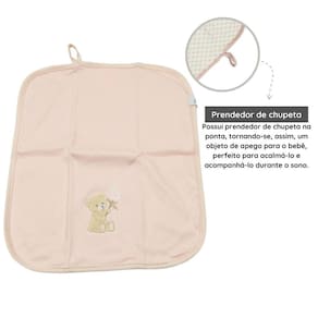 O Kit de Babinhas Hug é perfeito para acompanhar o bebê desde o nascimento, estando presente em todos os passeios que o bebê fizer, e no dia a dia, junto com a família. Seu tamanho é perfeito para que os papais possam colocá-la no ombro depois que o bebê mamar e precisar arrotar. Assim, caso volte algum leite do bebê, os papais não se sujarão. Também é ótimo ter o kit de babinhas Hug por perto para quando o bebê se sujar. Além disso, possui prendedor de chupeta na ponta, tornando-se assim, um objeto de apego para o bebê, perfeito para acalmá-lo e acompanhá-lo durante o sono.