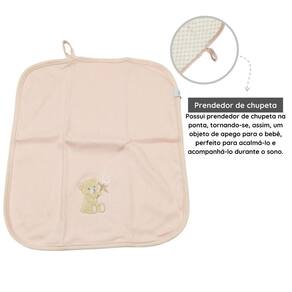 O Kit de Babinhas Hug é perfeito para acompanhar o bebê desde o nascimento, estando presente em todos os passeios que o bebê fizer, e no dia a dia, junto com a família. Seu tamanho é perfeito para que os papais possam colocá-la no ombro depois que o bebê mamar e precisar arrotar. Assim, caso volte algum leite do bebê, os papais não se sujarão. Também é ótimo ter o kit de babinhas Hug por perto para quando o bebê se sujar. Além disso, possui prendedor de chupeta na ponta, tornando-se assim, um objeto de apego para o bebê, perfeito para acalmá-lo e acompanhá-lo durante o sono.