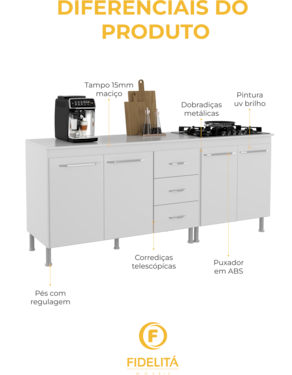 - Ideal para instalação de cooktop (acompanha gabarito de recorte). - Prateleira interna para melhor organização. - Design moderno que combina com diferentes estilos de decoração.