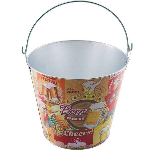 Kit 2 Baldes De Gelo Para Cerveja Estampado Em Metal Galvanizado 4,8 Litros -