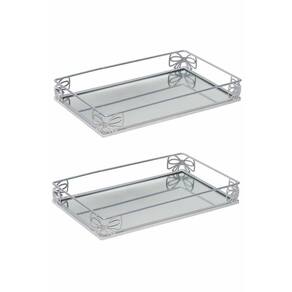 Bandeja de Metal com Espelho Decorativa Lavabo Banheiro