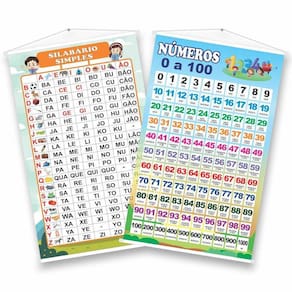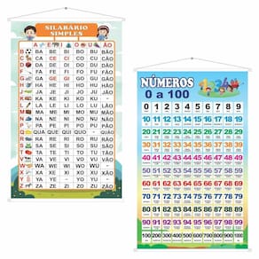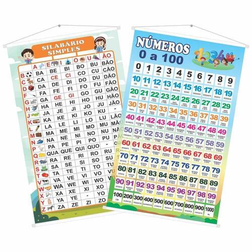 Kit com 2 Banners Pedagógicos: 1 Banner Pedagógico Silabário Simples 1 Banner Pedagógico Números 0 a 100