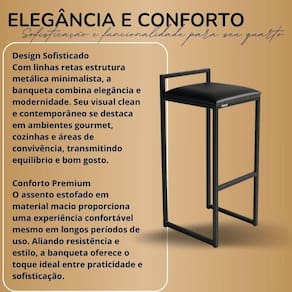 O assento em corino, além de elegante, oferece toque macio e fácil limpeza, tornando o dia a dia mais prático sem abrir mão do estilo. O design minimalista, com linhas retas e proporções equilibradas, se adapta perfeitamente a cozinhas gourmet, áreas de lazer e espaços corporativos modernos.
