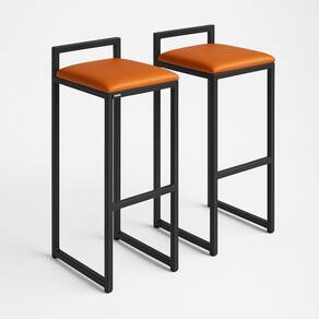 Kit 2 Banqueta Alta Cozinha Balcão Gourmet Bar Corino Bancos Cor:caramelo