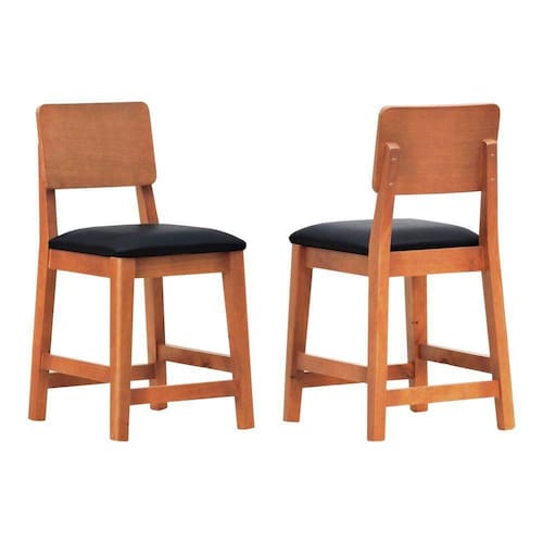 Kit 2 Banqueta Baixa-cadeiras Lyon Madeira Maciça Encosto Anatômico Assento Estofado - Amêndoa Corano Preto