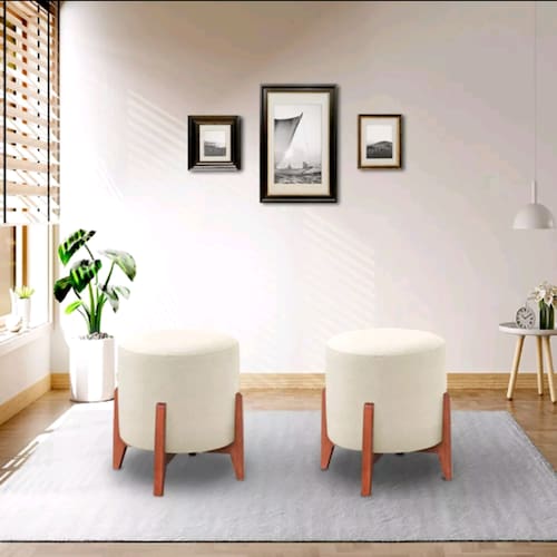 kit 2 Banqueta Puff Thor Luxo Madeira Maciça - Bege