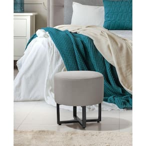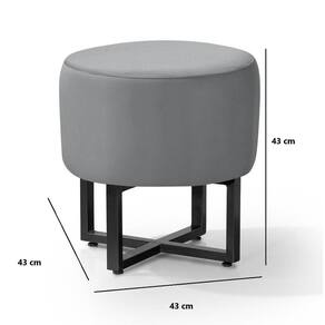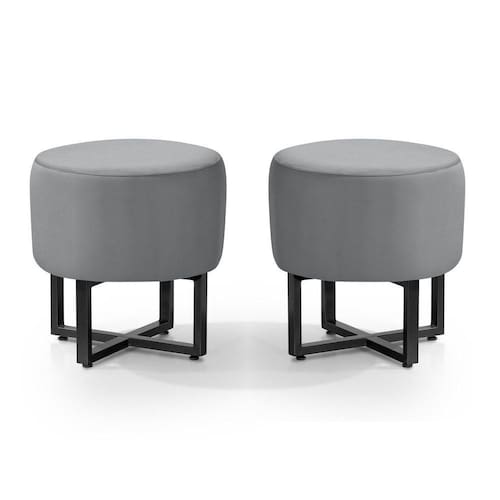 Kit 2 Banqueta Redonda Tecido Veludo Cinza Com Pes de Ferro Estilo Industrial Preto