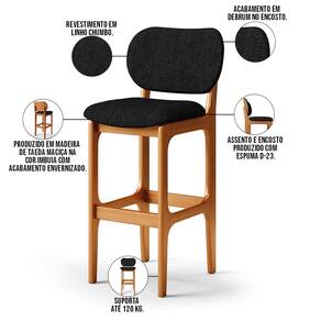 Amplamente sofisticado, o Kit 2 Banquetas Alta Bar Cozinha Sala Jantar Fixa Betta L02 Imbuia Linho Chumbo - Lyam Decor irá agregar ainda mais valor em sua decoração!! Sendo capaz de compor muito bem o ambiente, é produzido com materiais de excelente qualidade, a resistente estrutura em madeira de Taeda, na cor imbuia, conta com apoio para os pés (que garante maior segurança), além do assento e encosto estofados super confortáveis e convidativos, que são revestidos em tecido Linho, extremamente elegante.