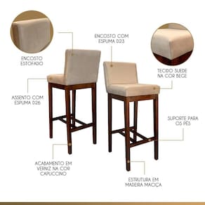 A Banqueta Alta Lisboa é uma peça de destaque para qualquer ambiente, produzida em Madeira Maciça com acabamento em Verniz Capuccino, garantindo durabilidade e elegância. Seu assento e encosto preenchidos com Espuma D26 e D23, respectivamente, oferecem o máximo conforto para refeições e momentos de descontração. Além disso, o revestimento em Tecido Suede na cor Bege confere um toque moderno e versátil. Seja na cozinha, sala de jantar ou espaço gourmet, essa banqueta é a escolha perfeita para agregar charme e funcionalidade ao lar!
