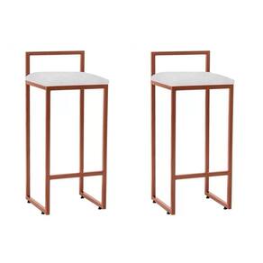 Kit 2 Banquetas Altas Industriais Em Aço Dori Cobre Assento Corino Branco