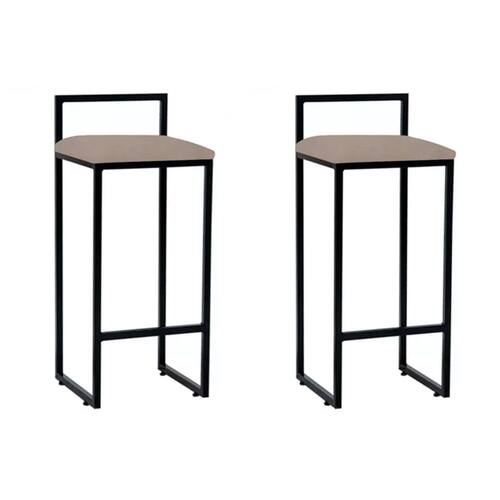 Kit 2 Banquetas Altas Industriais Em Aço Dori Preto Assento Suede Bege