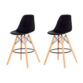 Kit 2 Banquetas Alta Eiffel Eames Preta Base Madeira Cozinha Bar Bistrô Bancada