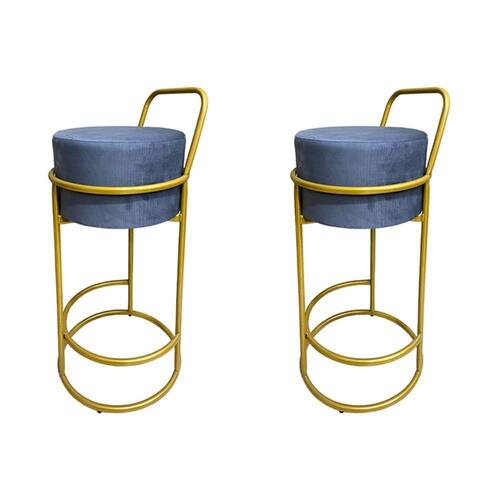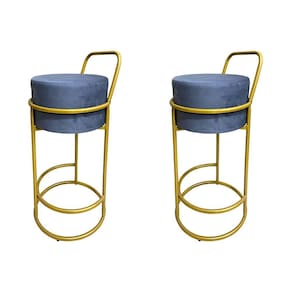 AS IMAGENS SÃO MERAMENTE ILUSTRATIVAS E PODEM SOFRER VARIAÇÕES DE COR E PEQUENOS DETALHES DE ACORDO COM O SEU MONITOR, ILUMINAÇÃO DO AMBIENTE E ATÉ MESMO A SUA PERCEPÇÃO 2 Banquetas Alta Redonda Base Dourada Veludo Cinza