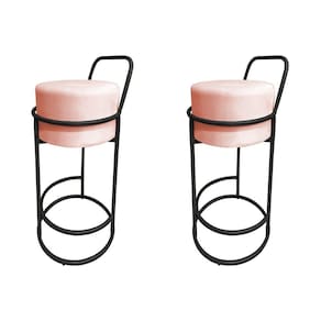 AS IMAGENS SÃO MERAMENTE ILUSTRATIVAS E PODEM SOFRER VARIAÇÕES DE COR E PEQUENOS DETALHES DE ACORDO COM O SEU MONITOR, ILUMINAÇÃO DO AMBIENTE E ATÉ MESMO A SUA PERCEPÇÃO 2 Banquetas Alta Redonda Base Preta Veludo Rose