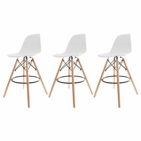 Kit 3 Banquetas Cadeiras Altas Com Encosto Alto Para Cozinha Americana Bar Bancada Balcão Ilha Area Gourmet Fixa Charles Eames Eiffel Base Madeira