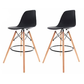Kit 2 Banquetas Cadeiras Alta Com Encosto Alto Para Cozinha Americana Bar Bancada Balcão Ilha Area Gourmet Fixa Charles Eames EiffeL Base Madeira