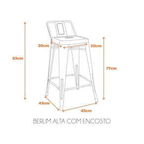 Baseada no design industrial, a banqueta Berlim Alta com Encosto é ideal para ambientes comerciais, como bares e restaurantes. Fabricada em aço com pintura automotiva, é o modelo ideal para você que procura resistência e praticidade para o seu ambiente. Acabamento da Estrutura: Pintura Altura do assento até o chão: 77 Altura Regulável: Não Ambiente Principal: Cozinha Complexidade da Montagem: Baixa: pode ser montado por uma pessoa sozinha Cor: Bronze Cor do Produto: Bronze Dobrável: Não Escala de Brilho: Semi-Brilho Itens Inclusos: 2 Banquetas, Kit Ferragens e Manual de Montagem Linha ou Coleção: Tolix Manual de Montagem e Instalação: https://product-hub-prd.madeiramadeira.com.br/825827/documents/16f49ed4-7277-431a-879f-973b2d05269fembanquetaberlimcomencosto.pdf Marca: Espresso Móveis Material do Assento: Aço Material do Encosto: Aço Necessita Montagem: Sim Origem do Produto: Importado Peso: 5.5 Possui Almofada no Assento: Não Possui Apoio Para os Pés: Sim Possui Encosto: Sim Possui Rodízio: Não Recomendações de Uso, Manutenção e Limpeza: Pano úmido Sistema de Montagem: Estrutura da Banqueta Completa + Encosto / Kit de Parafusos + Chave de Parafusos Tipo de Assento: Fixo Tipo de Encosto: Fixo