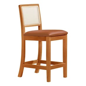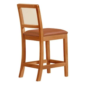 Kit 2 Banquetas Altas Em Tela Sextavadas Assento Estofado Couro Pu Caramelo Rubi Madeira Maciça Mel - Cor: Marrom