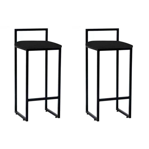 Kit 2 Banquetas Altas Industriais Em Aço Dori Preto Assento Suede Preto - Cor: Preto