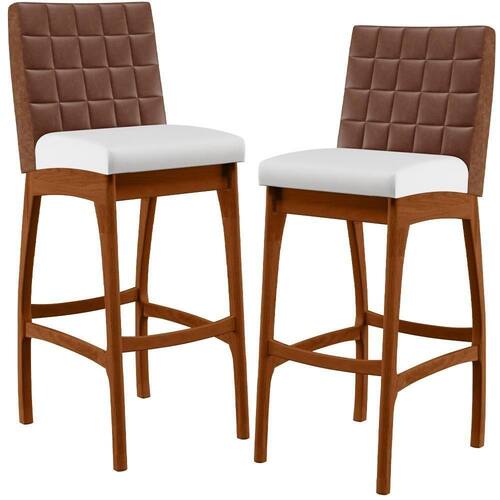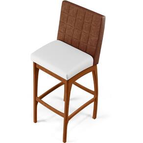 ndo muita excelência, o Kit 2 Banquetas Altas Cozinha Sala Jantar Fixa Mila B04 Couríssimo Marrom Corano Branco - Lyam Decor é o complemento que faltava para deixar sua casa ainda mais extraordinária. Seu encosto com costura em padrão quadriculado e assento estofados, centralizam em si uma graciosidade estonteante, sem perder todo o conforto. A estrutura em madeira, na cor nozes, também é digna de notoriedade, por imprimir bastante personalidade a sua decoração. Vale ressaltar ainda, o apoio para os pés que garante maior à banqueta.