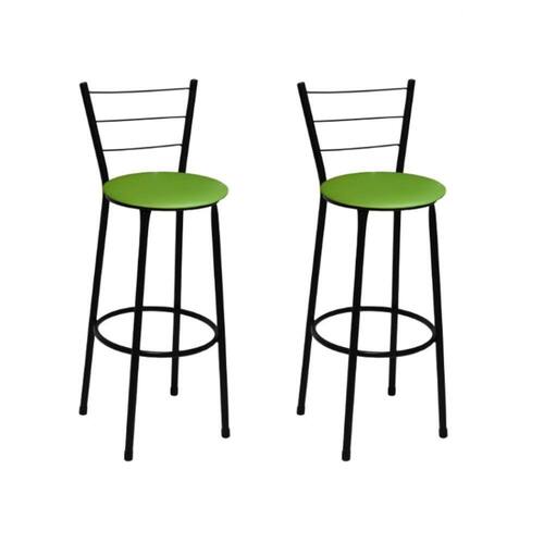 Kit 2 Banquetas Altas Preta com Encosto Assento Verde - Preto