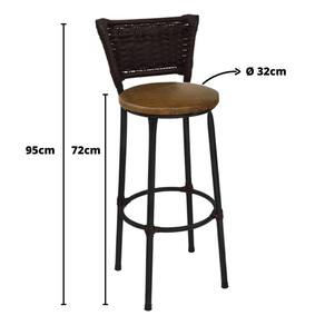 Banqueta Alta Preta Junco Argila com Assento Marrom Fortmix