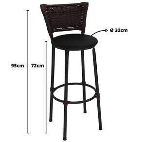 Kit 2 Banquetas Altas Preta Junco Argila com Assento Preto Fortmix