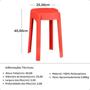 Largura: 25,50 | Tamanho: 45x25,50 | Produto: Banqueta Baixa Nordica | Tonalidade: Vermelho | Comprimento: 25,50 | Altura: 45 | Peso do Produto: 2 | Cor: Vermelho | Material da Estrutura: Polipropileno | Quantidade de Lugares: 1 | Comprimento do Produto (cm): 25,50 | Estado de Origem: SC | Material para Filtro: Polipropileno | Largura do Produto (cm): 25,50 | Peso do Produto (Kg): 2 | Altura do Produto (cm): 45 | Fabricante: Magazine Decor | Profundidade Montado: 25,50 | Largura Montado: 25,50 | Altura Montado: 45 | Garantia do Fabricante: 3 | Ambiente Indicado: Salas | Material do Assento: Polipropileno | Dimensão (AxL): 45x25,50 | Comprimento do Produto: 25,50 | Altura do Produto com Embalagem (cm): 50 | Largura Produto Com Embalagem (cm): 30 | Comprimento Produto Com Embalagem (cm): 30 | Peso Produto Com Embalagem (Kg): 3 | Descrição do Tamanho: 45x25,50x25,50 | Nome do Simples no Fornecedor: Banqueta Baixa Nordica | Necessita Montagem: Não | Instruções/Cuidados: Não Limpar com Materiais Abrasivos