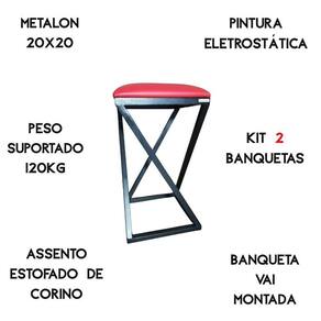 Kit 2 Banquetas Baixa Para Cozinha Industrial Vermelho