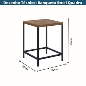 Cor: Vermont, Preto | Materiais: MDP BP 25mm, Aço | Material da estrutura: Madeira | Tonalidade: Marrom | Linha: Steel Quadra | Estilo de Decoração: Industrial | Marca: Artesano | Atributos: Sofisticado, Resistente, Versátil, Pratico | Área de Uso: Interna | Garantia (tempo): 6 meses | Garantia (descritivo): Garantia contra defeitos de fabricação de 06 meses. Consulte as nossas políticas. | Peso (kg): 12.80 | Largura (cm): 35.00 | Profundidade (cm): 35.00 | Altura (cm): 45.00 | Entregue Montado?: Não | Possui Manual de Montagem?: Acompanha o Produto | Origem do Produto?: Nacional | Conservação e Manutenção: Limpeza com pano úmido em solução de água e detergente neutro. Secar em seguida. | Acabamento: Fosco | Tipo de Banco | Banqueta: Banqueta | Estado de Origem: RS | Conteúdo da Embalagem: 2 Banquetas | Ambiente Indicado: Cozinha | Montagem: Desmontado | Altura da Banqueta: Baixa | Produto: Kit 2 Banquetas Baixas Industrial Steel Quadra Artesano 45 cm (altura) MDP Vermont Aço Preto Fosco | Peso Suportado (kg): 100.00