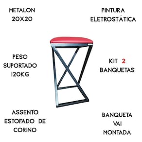 Kit 2 Banquetas Banquinho Industrial Pés Vermelho