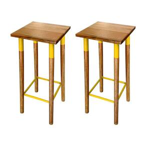 Kit 2 Banquetas Bistro Industrial Colors Ferro e Madeira Maciça - Amarela - Marrom