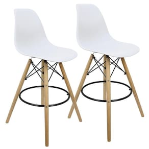 Kit 2 Banquetas Charles Eames Eiffel Wood Design Base Fixa Madeira - Branca Banquetas Eames Eiffel Wood Base Fixa Madeira