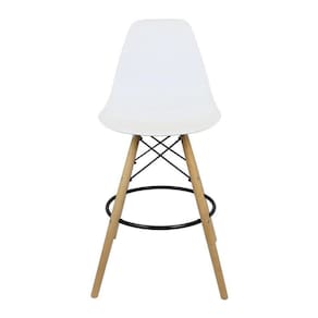 Modelo : Banqueta Eames Material Assento: Polipropileno. Material Estrutura: Aço Material dos pés: Madeira Número de pés 4 Altura: 106 cm Largura: 53 cm Profundidade: 56 cm Produto precisa de Montagem: Sim Tipo do Encosto: Fixo Tipo de pé: Fixo Altura do assento até o chão: 68 cm Possui braço: Não Possui regulagem de altura: Não Possui regulagem de inclinação: Não Peso Suportado Dimensionados: 110 kg