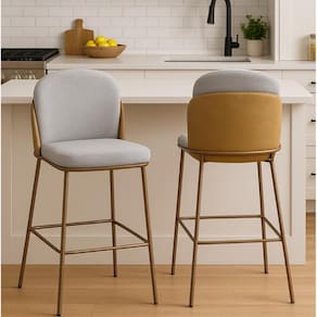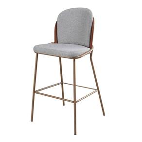 Kit 2 Banquetas com Encosto Estofado e Base em Aço Carbono Champanhe – Cristal Exclusiva Linho Lincoln Cinza - Champanhe Epóxi -