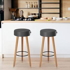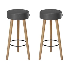 Kit 2 Banquetas Couro Sintético e Madeira Maciça Londres Salaone Preto/Marrom